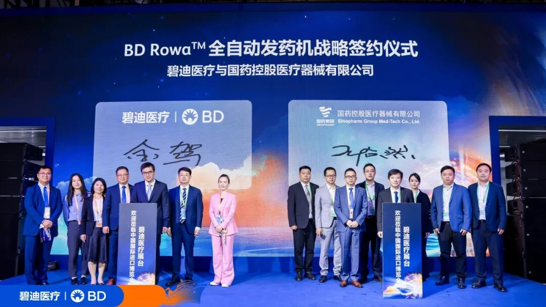 11月6日,suncitygroup太阳集团医疗器械有限公司(以下简称“国控器械”)与碧迪医疗,在第八届中国进口博览会现场签署BD Rowa™ 全自动发药机战略合作协议。双方将在医疗流通领域充分发挥各自资源禀赋,整合专业优势,为提升先进医疗设备与智慧药房服务的可及性、安全性和效率贡献更大的力量,更好地惠及广大患者与人民群众。